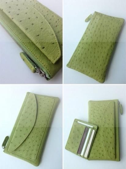 商品名:Long Wallet Ostrich Leather/長財布 オーストリッチ革/Apple Green (アップルグリーン)