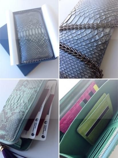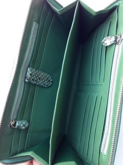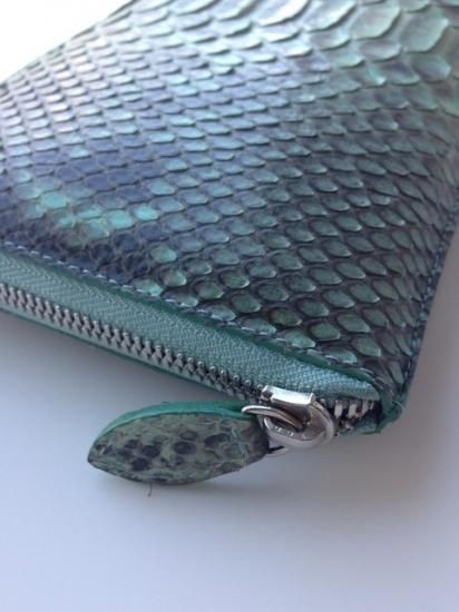 商品名:クラッチバッグタイプ ロングウォレット パイソン革/Mint×Gray(ミント×グレー)